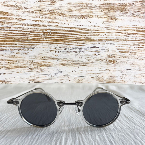 Clear frame with grey lens