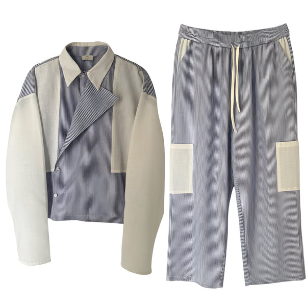 The Sky Franny Pieces include a distinct set of a button-down shirt and pants with lone sleeves. They can be purchased individually as well. Made from a blend of cotton and linen, the fabric offers a comfortable fit up to size XL. Made also for both men and women.